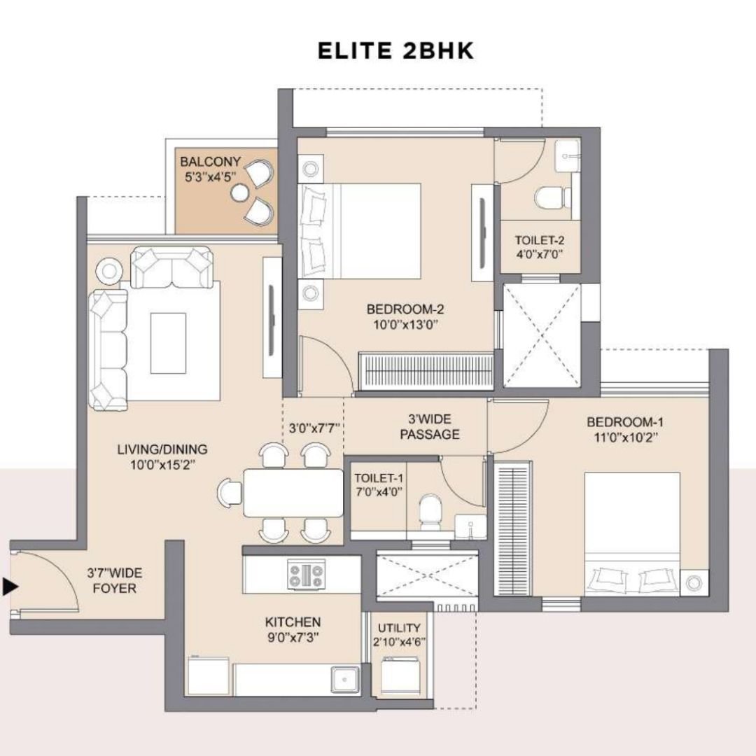 • Spacious 1, 2 and 3 BHK homes designed for comfort and efficiency