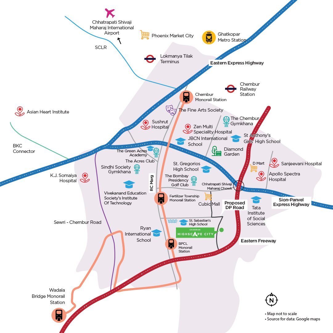 Positioned off the Eastern Freeway in Sahyadri Nagar, Chembur East, Chandak Highscape City offers swift, convenient access across Mumbai’s key zones — where daily commutes become effortless and the city becomes your neighborhood.